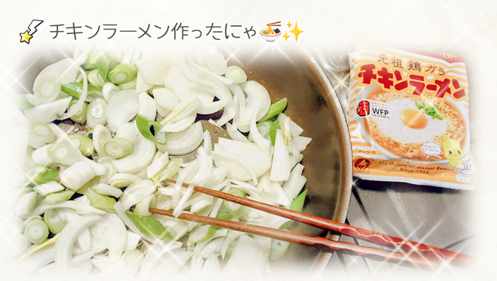 お腹空いたから、久しぶりの自炊にゃ🍜