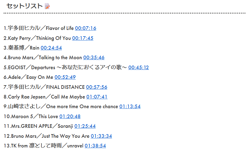 - ソングリストの内容も見直し追加:済@3/22~