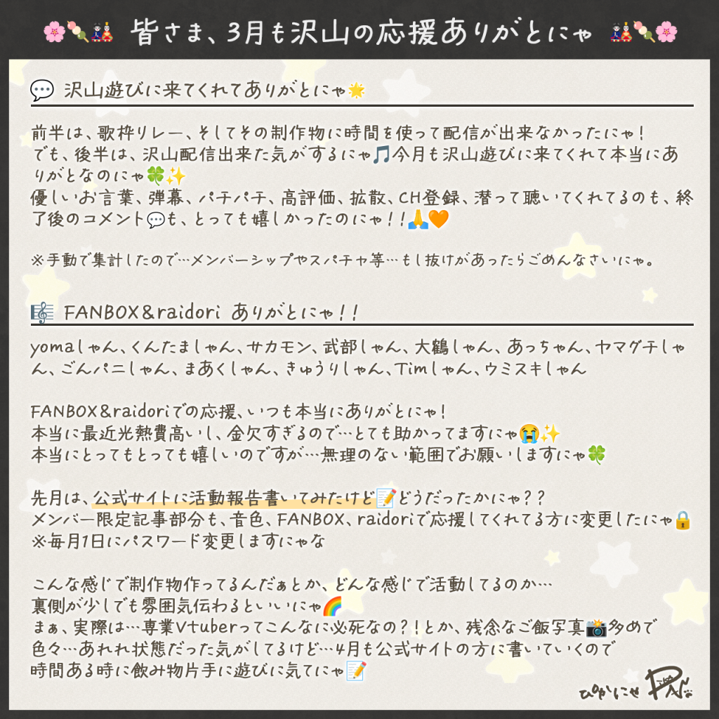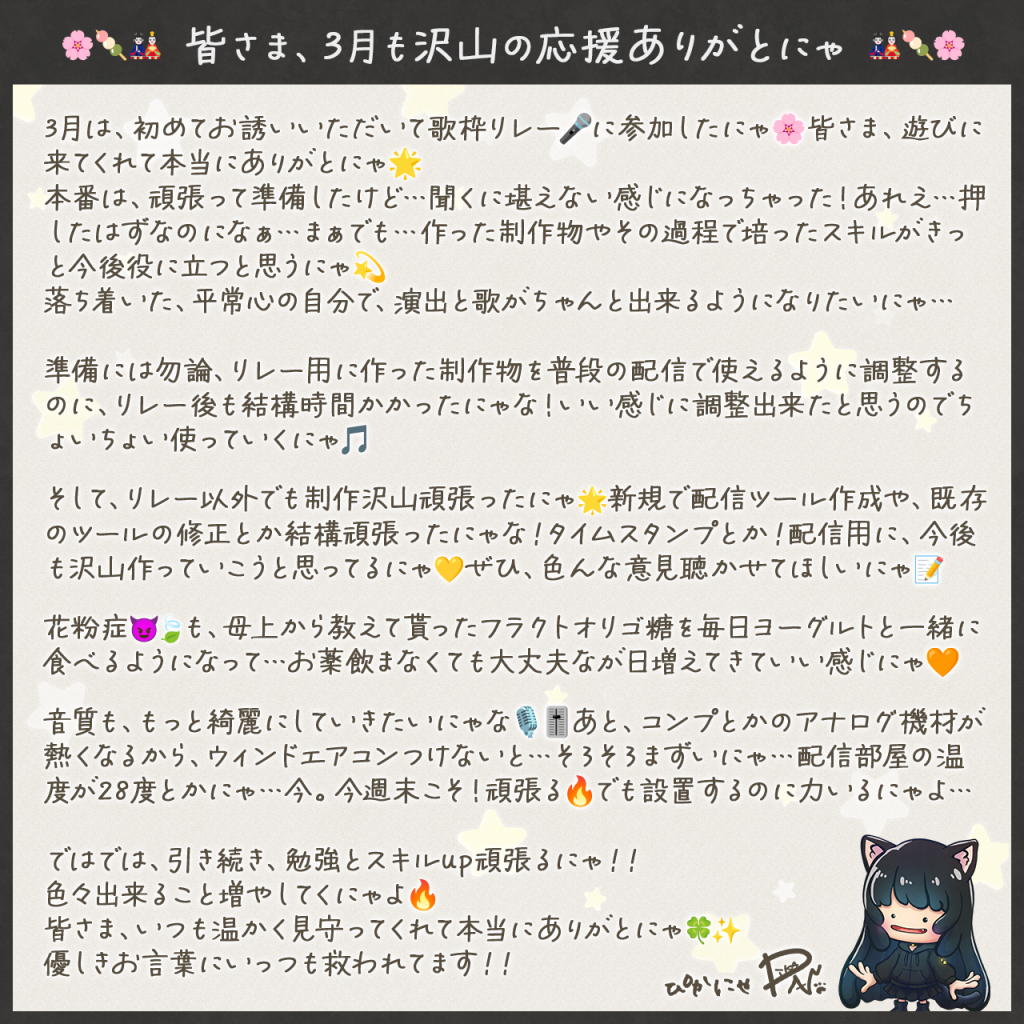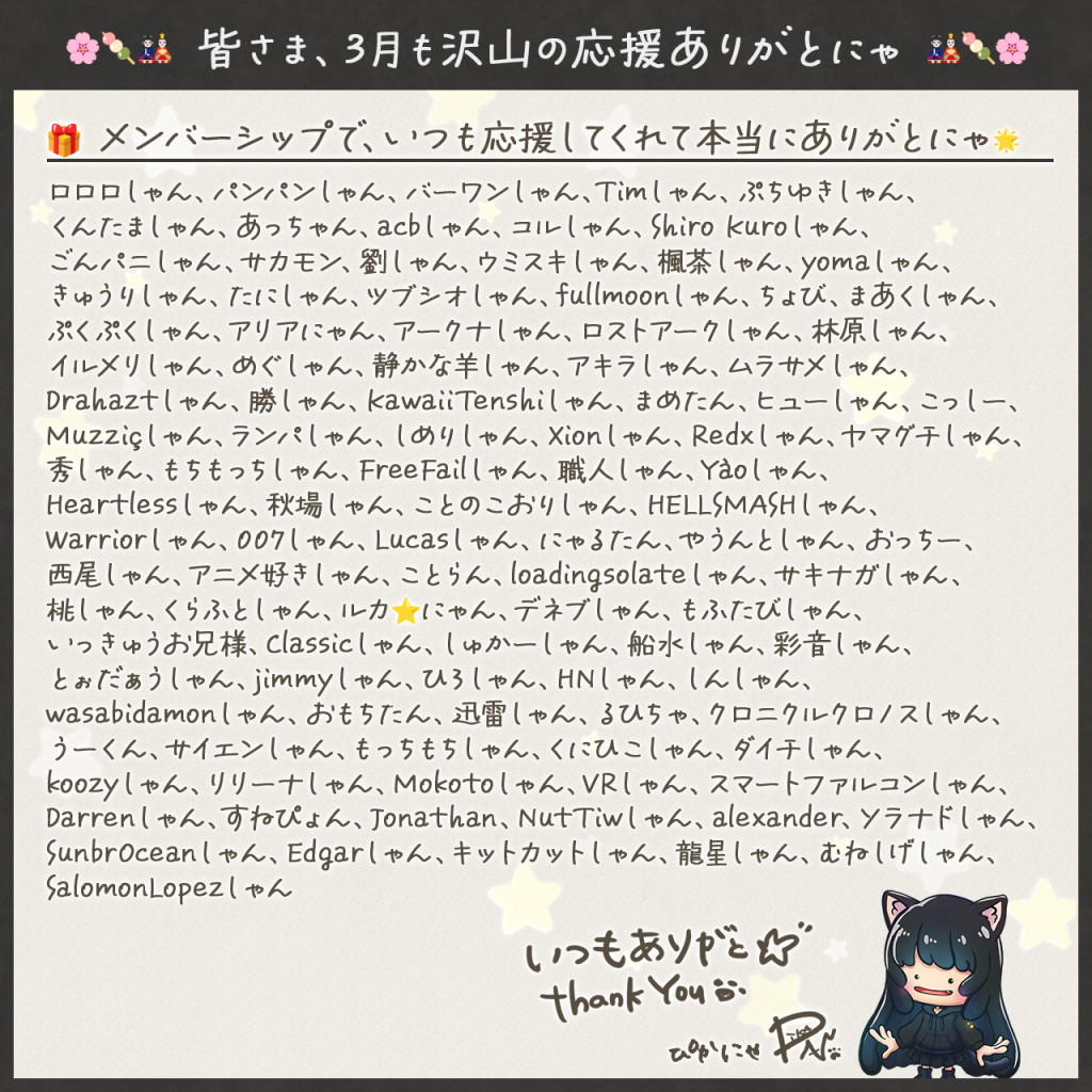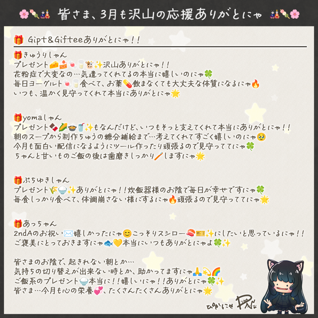 いつも温かく見守っていただきありがとにゃ🌟
